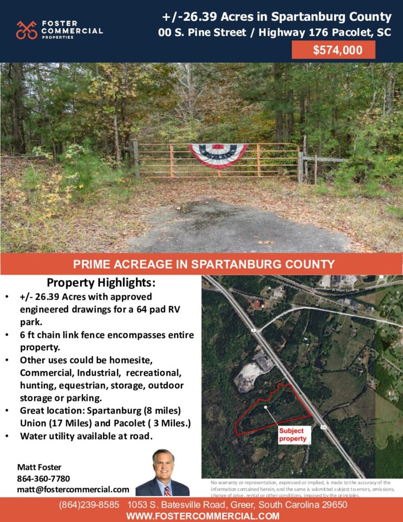 - +/- 26.39 Acres with approved engineered drawings for a 64-pad RV park